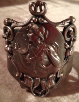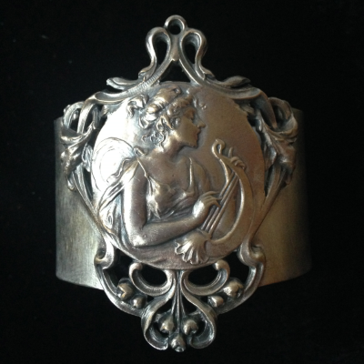 Bracelet manchette représentant une femme jouant de la lyre, dans un motif Art Nouveau.