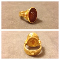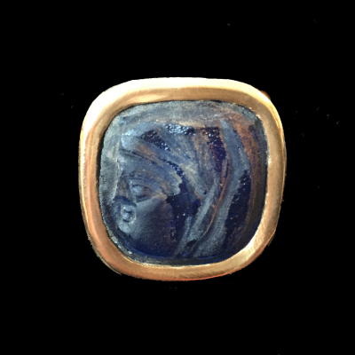 Bague en or 18 carats sertie d’une magnifique intaille romaine en cornaline, représentant un profil féminin.